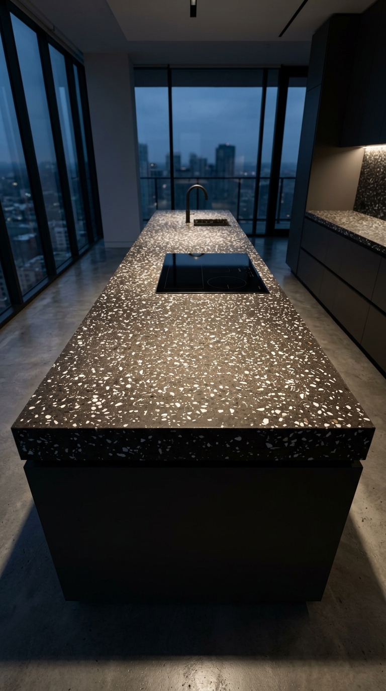 Concrete offers warmth and seamless customization that stone cannot provide, at a much more manageable weight.